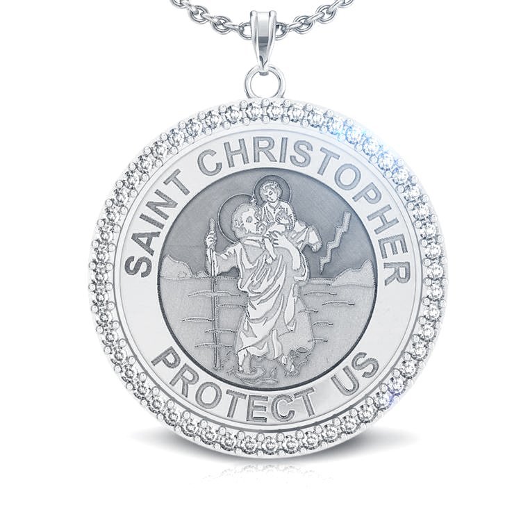 Saint Christopher Diamond Studded Round Religious Medal - "EXCLUSIVE"