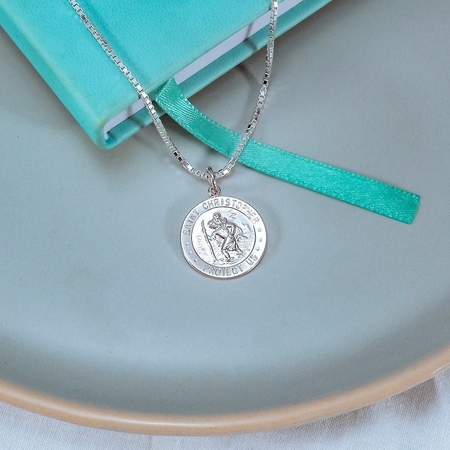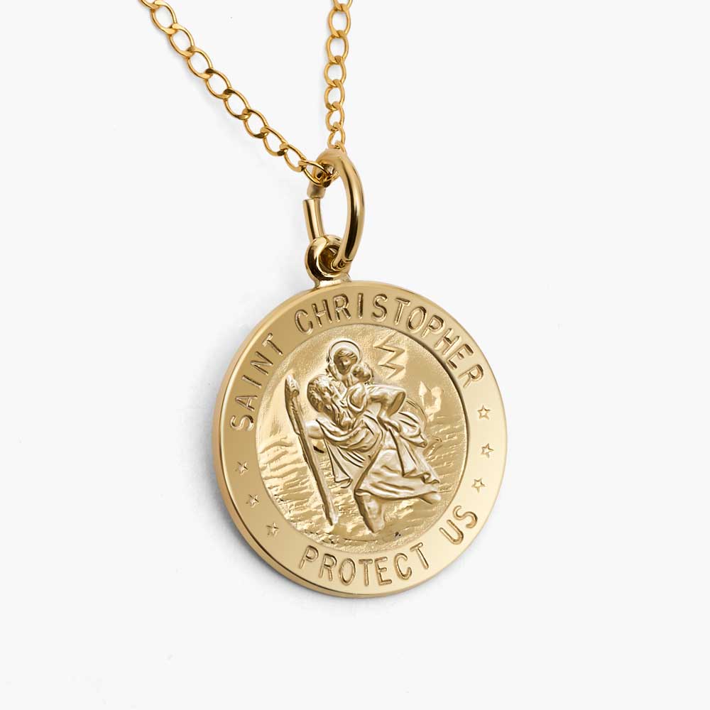 This Saint Christopher is the most popular saint worn by travelers. The round medal has a high polish finish and comes in different Sizes.. St. Christopher is the patron saint of athletes, porters, sailors and travelers.