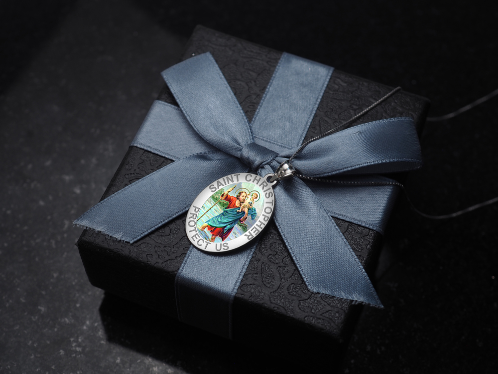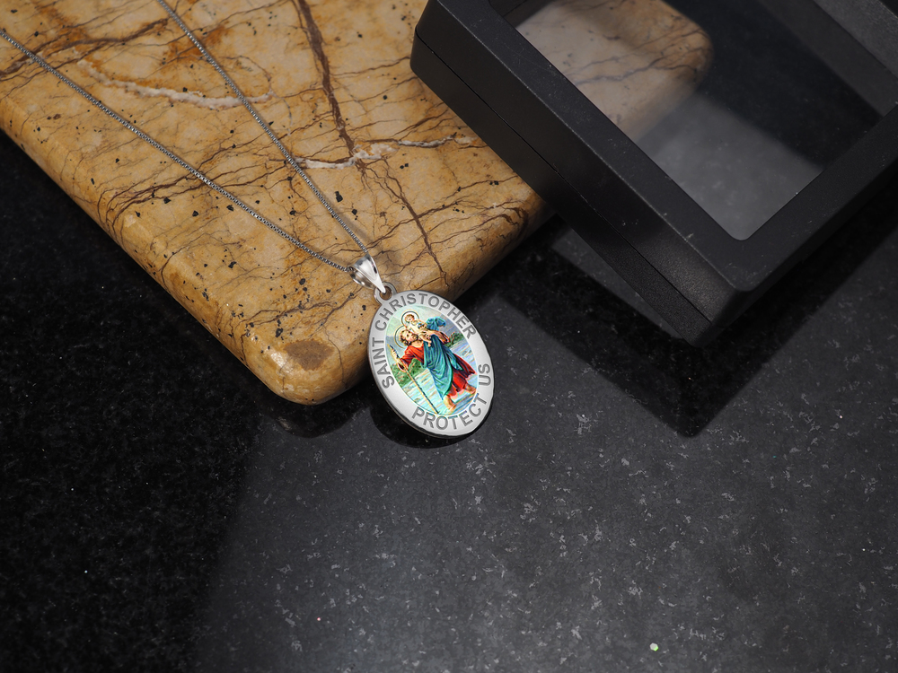 Saint Christopher OVAL Religious Medal "Color EXCLUSIVE"