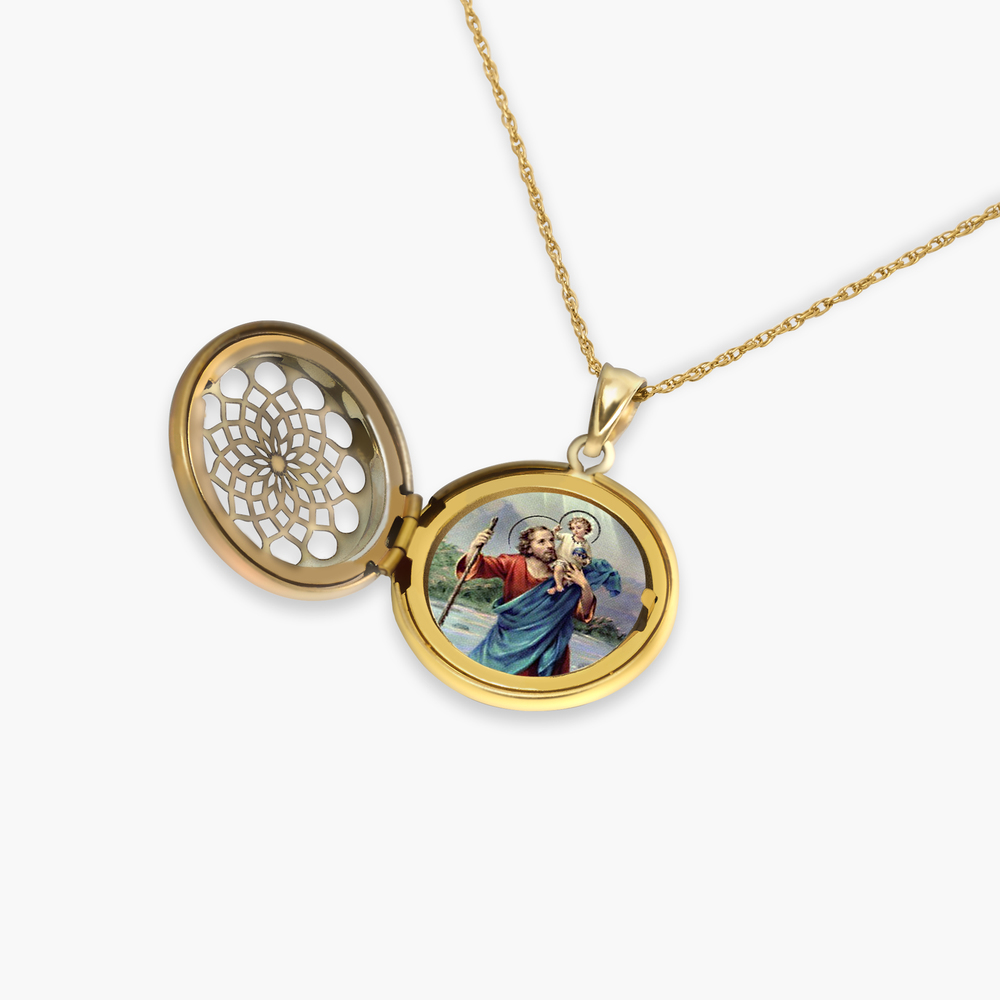 Saint Christopher Ornate Cut-out Round Locket