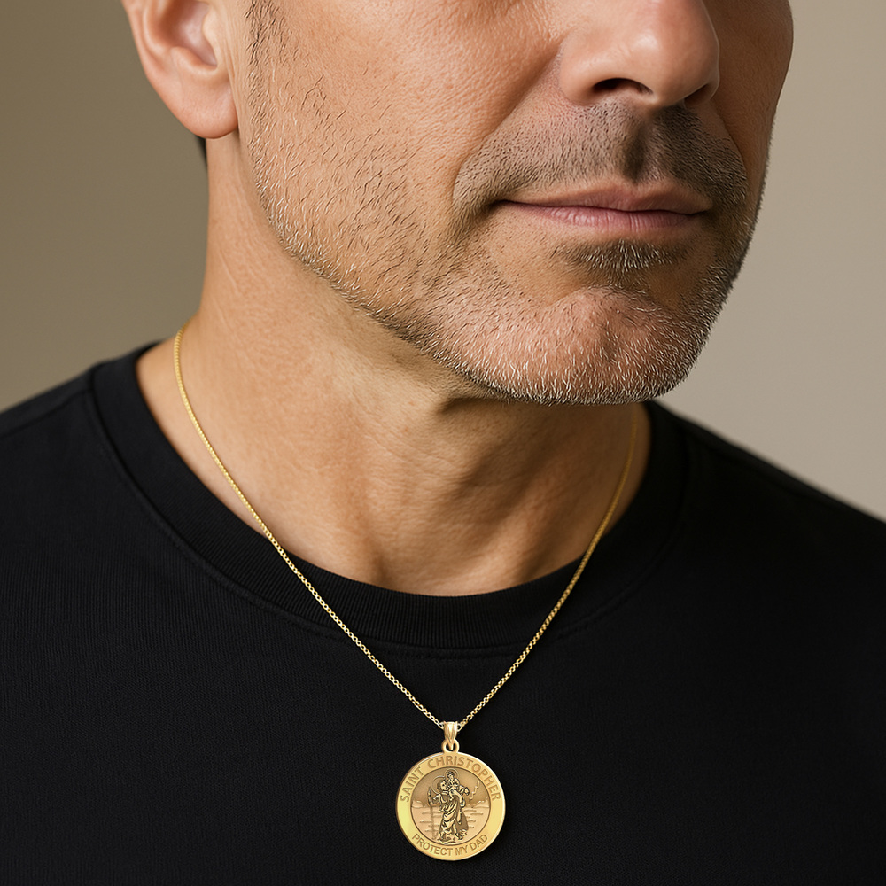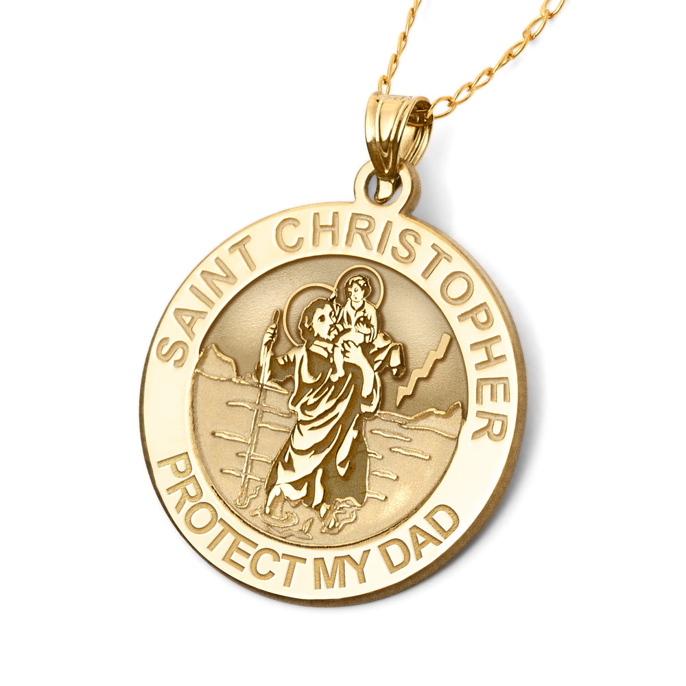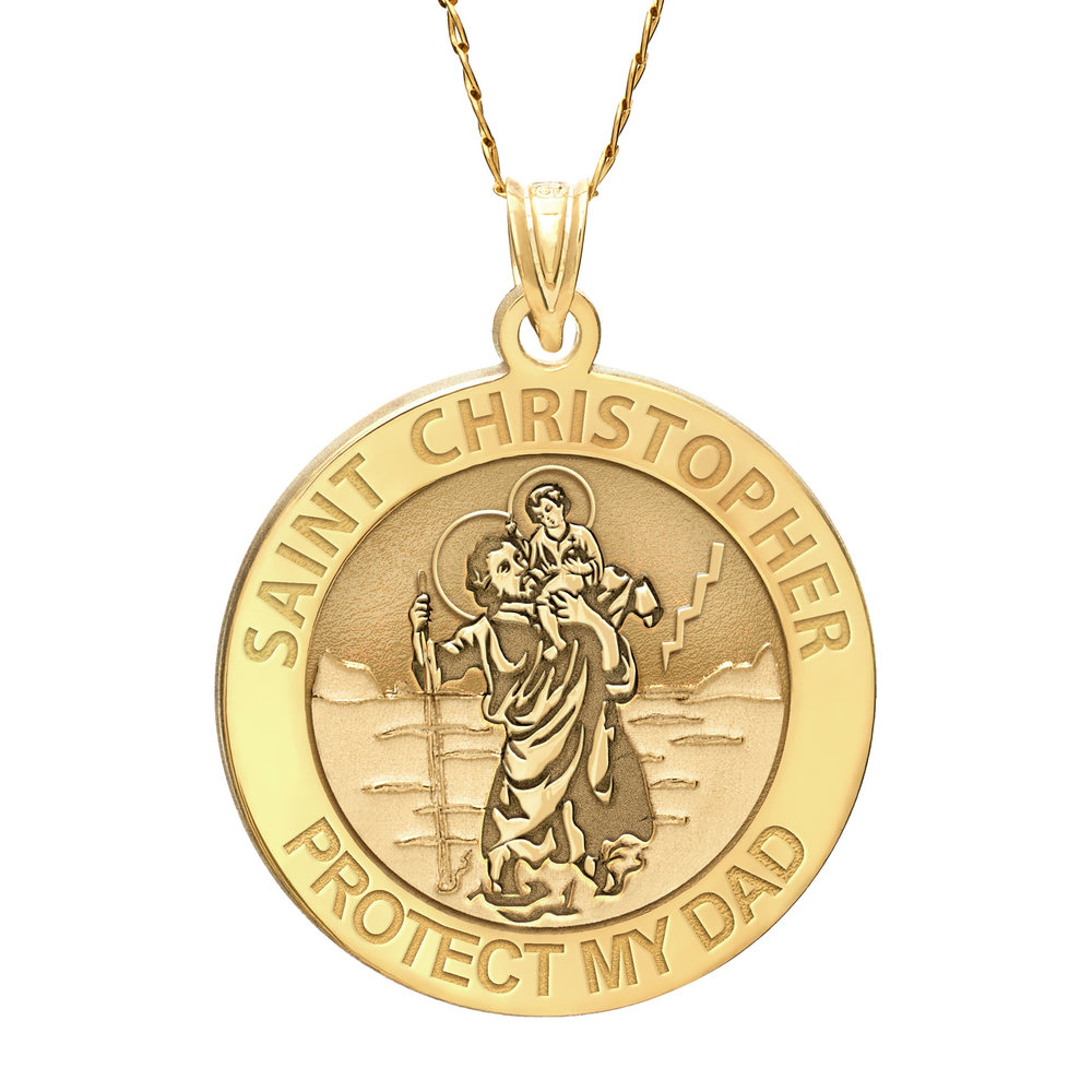 Saint Christopher Protect My Dad Religious Round Medal