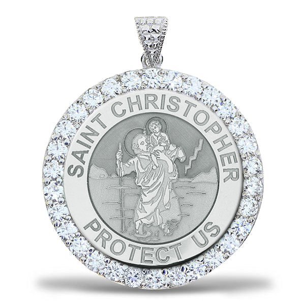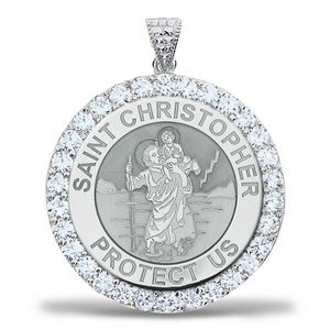 Saint Christopher CZ Round Religious Medal - "EXCLUSIVE"