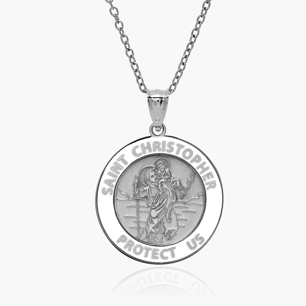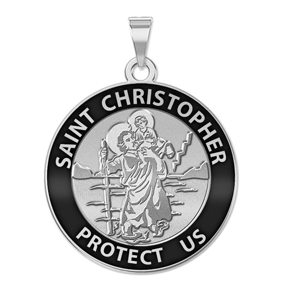 Saint Christopher Round Religious Medal w/ Black Enamel or White Enamel - "EXCLUSIVE"