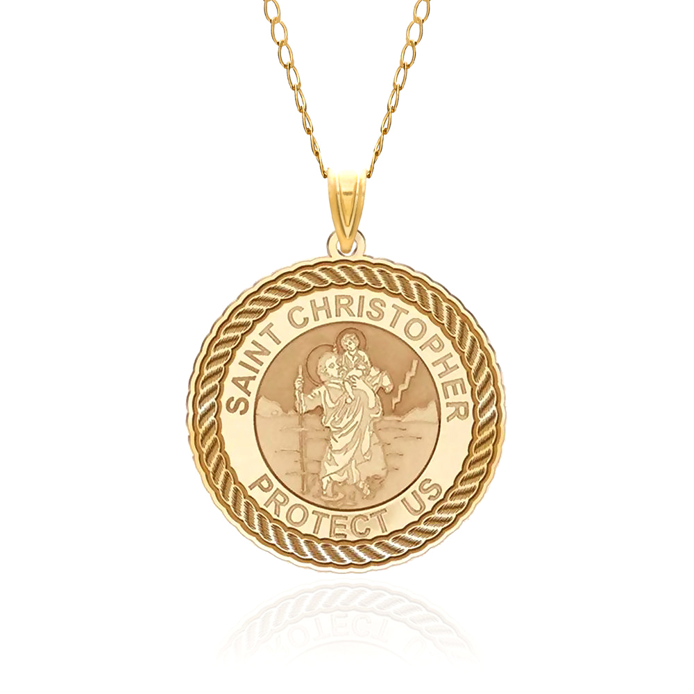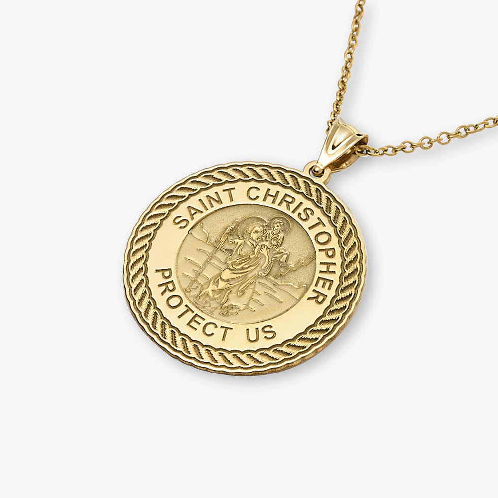 Saint Christopher Round Rope Border Religious Medal