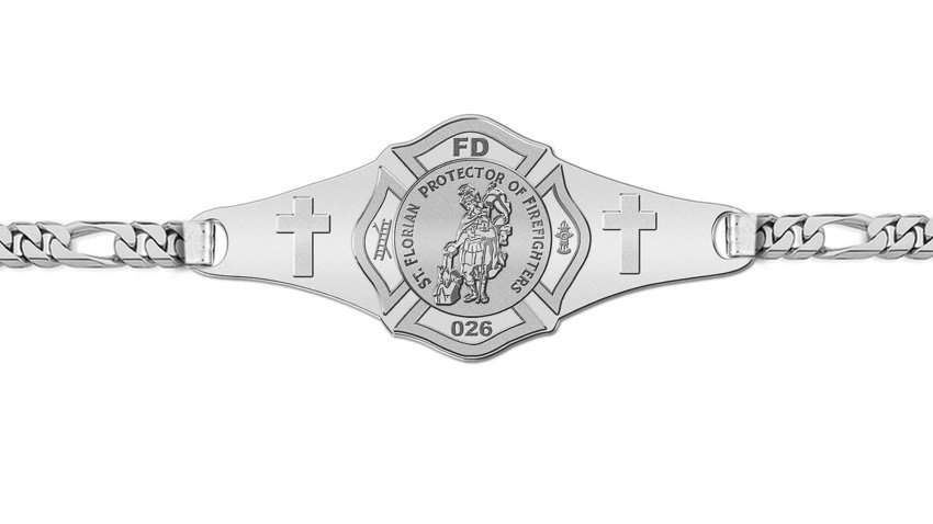 * Comes with a Lobster Claw Clasp. * This bracelet is Unisex and can be for a man or woman. * 7 Inches is standard for women * 8 Inches is standard for men. * Men’s Plate Size: 1 3/4 Inches Wide x 1/2 Inch Tall * Women’s Plate Size: 1½ Inches Wide x 1/3 Inches Tall Saint Florian is a Christian saint, and the patron saint of Poland; Linz, Austria; chimney sweeps; and firefighters. His feast day is May 4. St. Florian is also the patron of Upper Austria, jointly with Saint Leopold. Florian lived in the time of the Roman emperors Diocletian and Maximian, and was commander of the imperial army in the roman province of Noricum. In addition to his military duties, he was also responsible for organizing firefighting brigades. The Roman regime sought to eradicate Christianity, and sent Aquilinus to persecute Christians. When Aquilinus ordered Florian to offer sacrifice to the pagan Roman gods in accordance with Roman religion, he refused, and cheerfully accepted the beatings of the soldiers, who used clubs, spikes and fire to torture him. He was executed by drowning in the Enns River with a stone tied around his neck. Later a woman named Valeria had a vision in which she saw him; Florian, in this vision, declared his intent to be buried in a more appropriate location. Saint Florian (b. 700) is reputed to have saved Nurnberg, Germany from burning in a great fire in the 8th century. It is not clear if he used the beer or the stored water from a brewery to extinguish the fire. Fires often happened at night, when people made fires for warmth. A nearby brewery would have been an obvious source of liquids, both water and beer, since water would have been drawn to settle out for the next day's brewing.