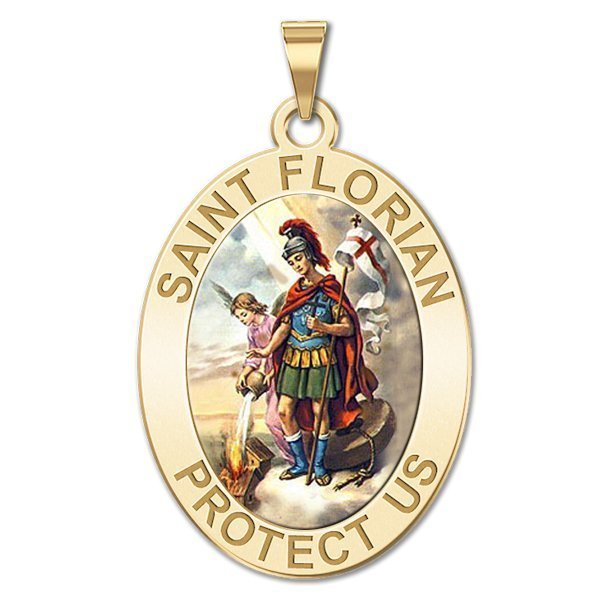 Saint Florian Oval Religious Medal "Color EXCLUSIVE"