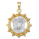 Saint Florian Two-Tone Sun Border Religious Medal "EXCLUSIVE"