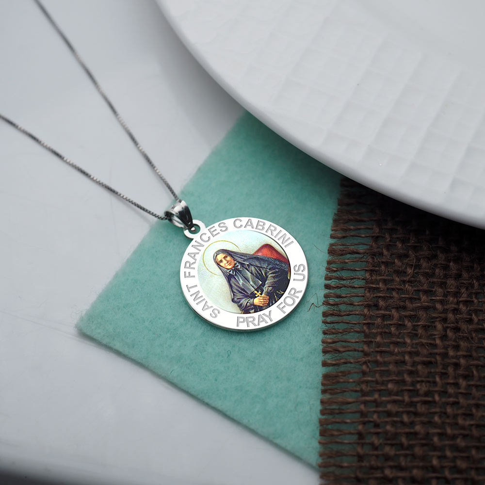 Saint Frances Cabrini Round Religious Medal "Color EXCLUSIVE"