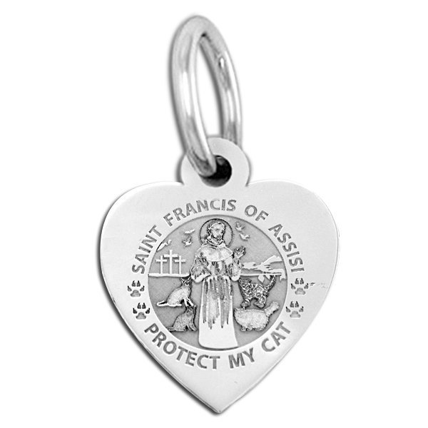 Saint Francis of Assisi - " Protect My Cat " Heart Shaped Pet Tag