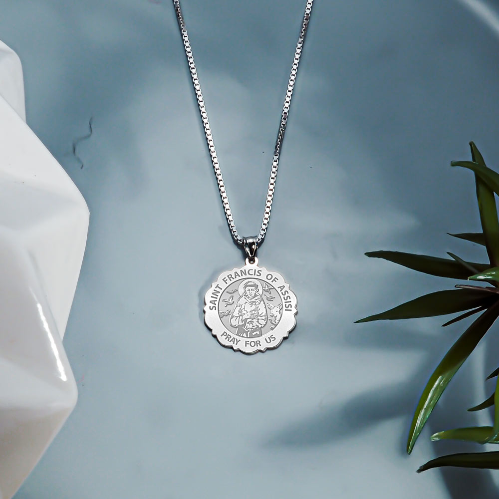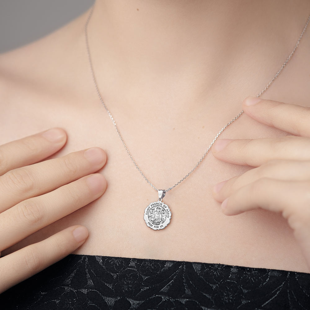 Saint Francis of Assisi Scalloped Round Religious Medal "EXCLUSIVE"