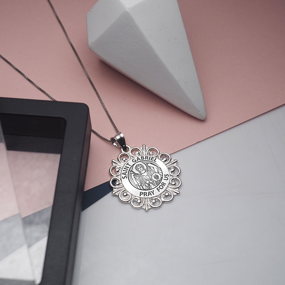 Saint Gabriel Round Filigree Religious Medal "EXCLUSIVE"