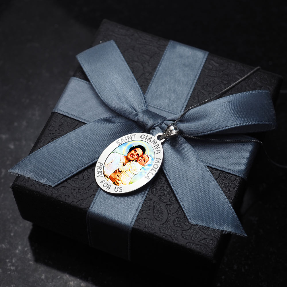 Saint Gianna Beretta Molla Oval Color Religious Medal "EXCLUSIVE"