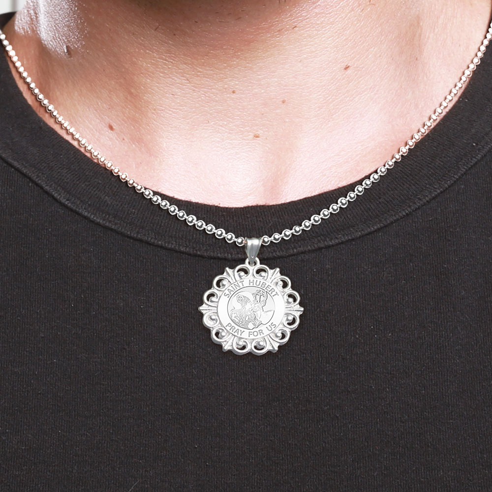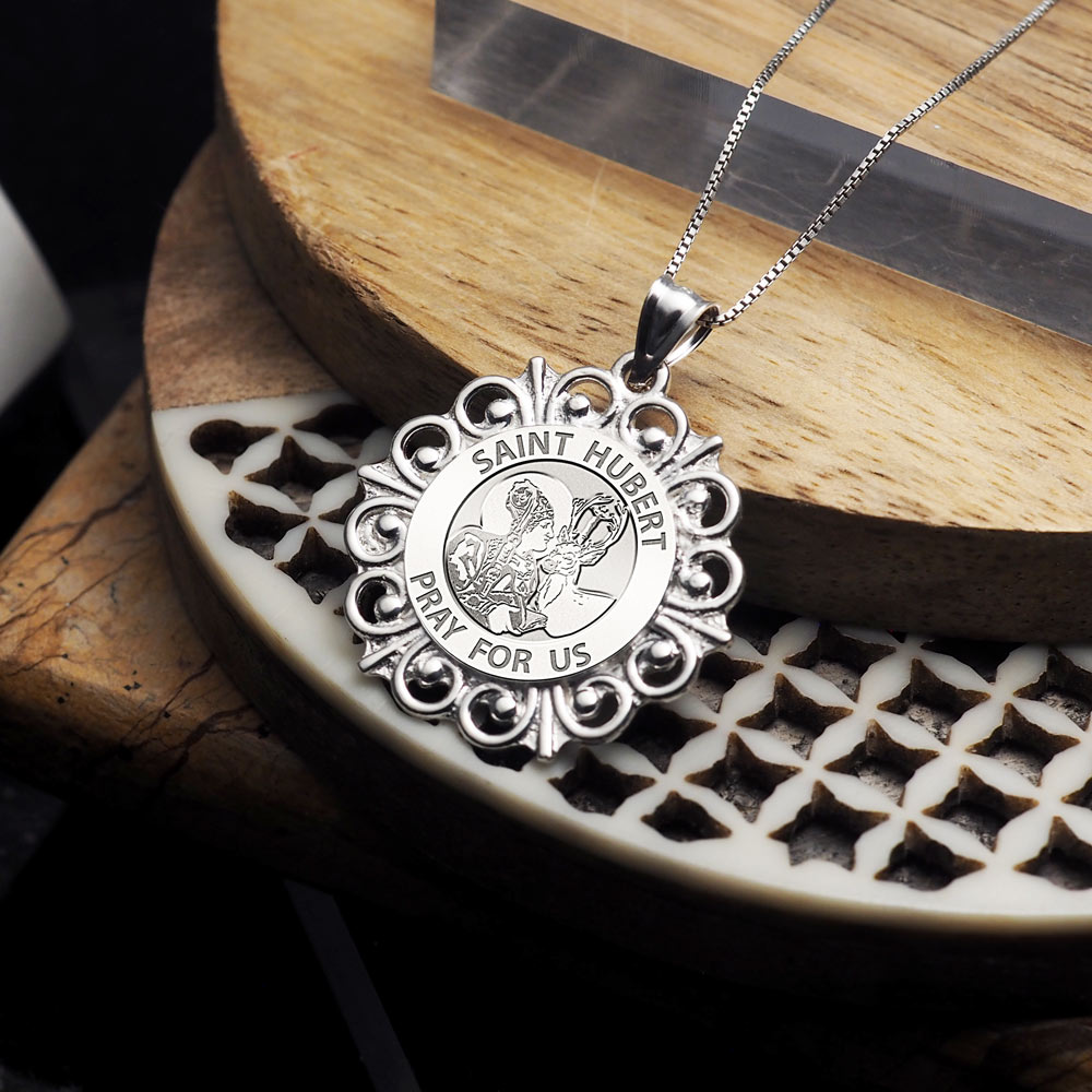 Saint Hubert Round Filigree Religious Medal "EXCLUSIVE"