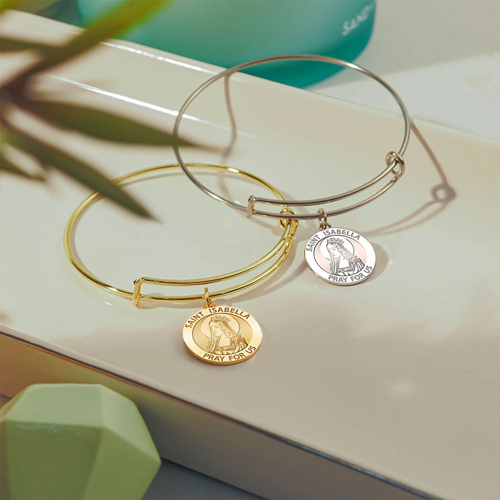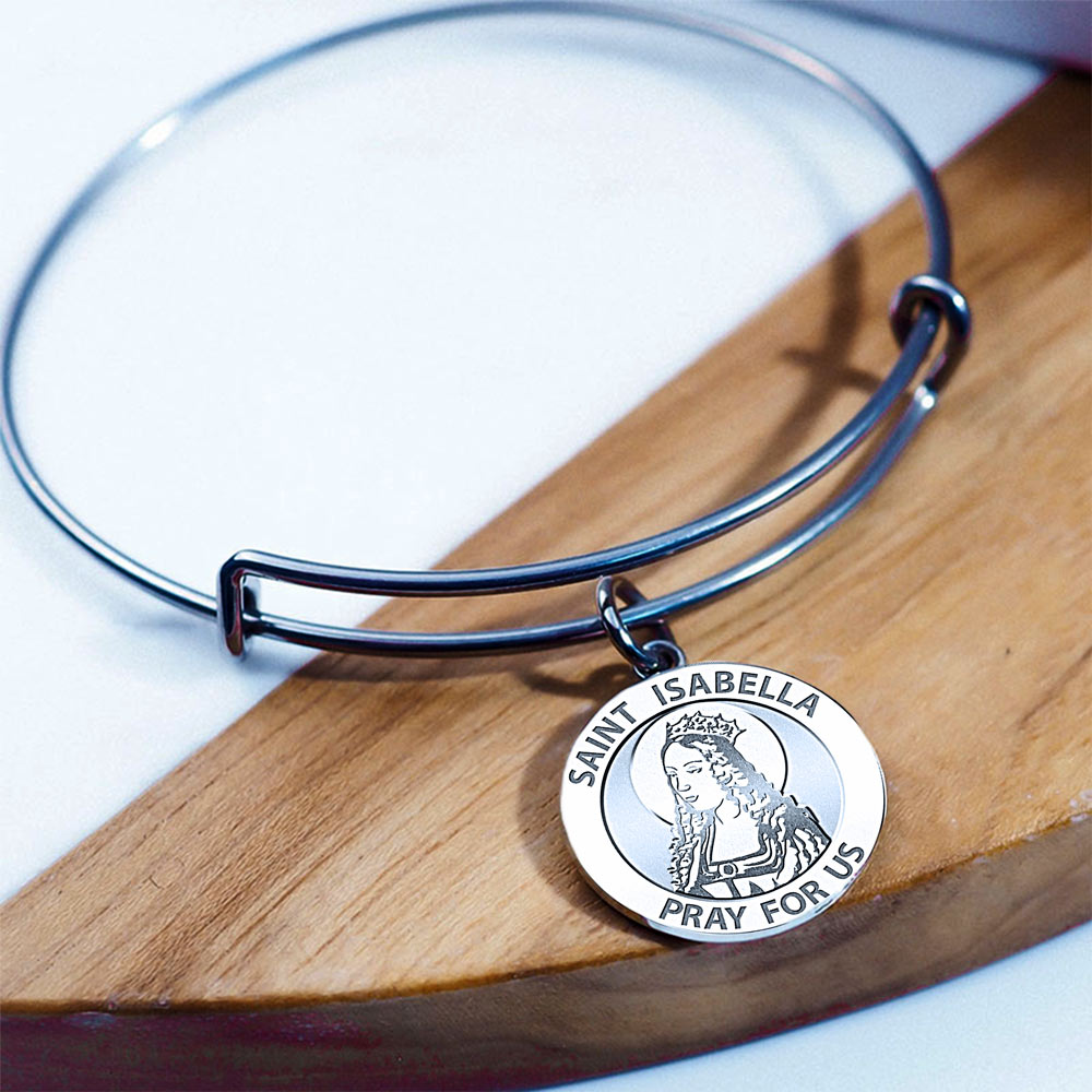 The Saint Isabella Medal charm measures at 3/4 Inch (Size of a Nickel)