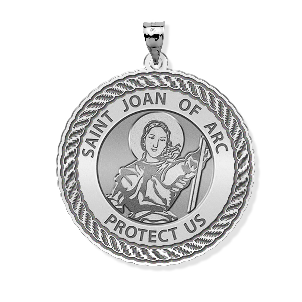 Saint Joan of Arc Round Rope Border Religious Medal