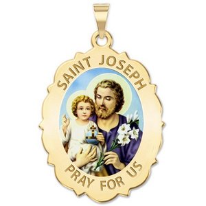 Saint Joseph Religious Scalloped Oval Color Medal "EXCLUSIVE"