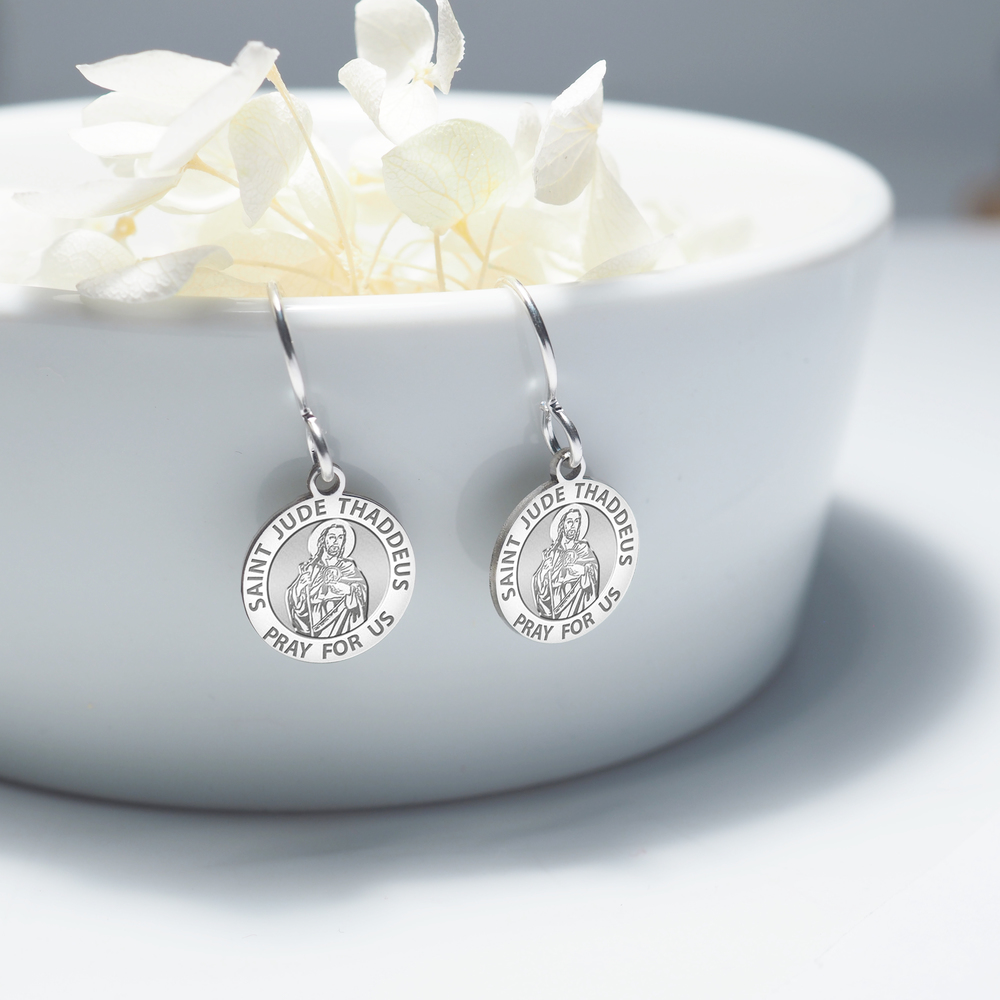 Saint Jude was one of the Twelve Apostles of Jesus. He is generally identified with Thaddeus, and is also variously called Jude of James, Jude Thaddaeus , Judas Thaddaeus or Lebbaeus. He is sometimes identified with Jude, brother of Jesus, but is clearly distinguished from Judas Iscariot, another disciple and later the betrayer of Jesus. The Armenian Apostolic Church honours Thaddeus along with Saint Bartholomew as its patron saints. In the Roman Catholic Church he is the patron saint of desperate cases and lost causes. Saint Jude's attribute is a club. He is also often shown in icons with a flame around his head. This represents his presence at Pentecost, when he received the Holy Spirit with the other apostles. Occasionally he is represented holding an axe or halberd, as he was brought to death by one of these weapons. In some instances he may be shown with a scroll or a book (the Epistle of Jude) or holding a carpenter's rule. *Price Per Pair * Each Earring is 15mm / 1/2" inch (smaller than a dime)