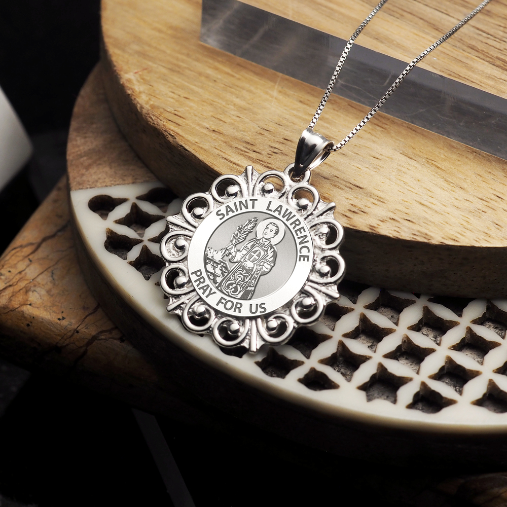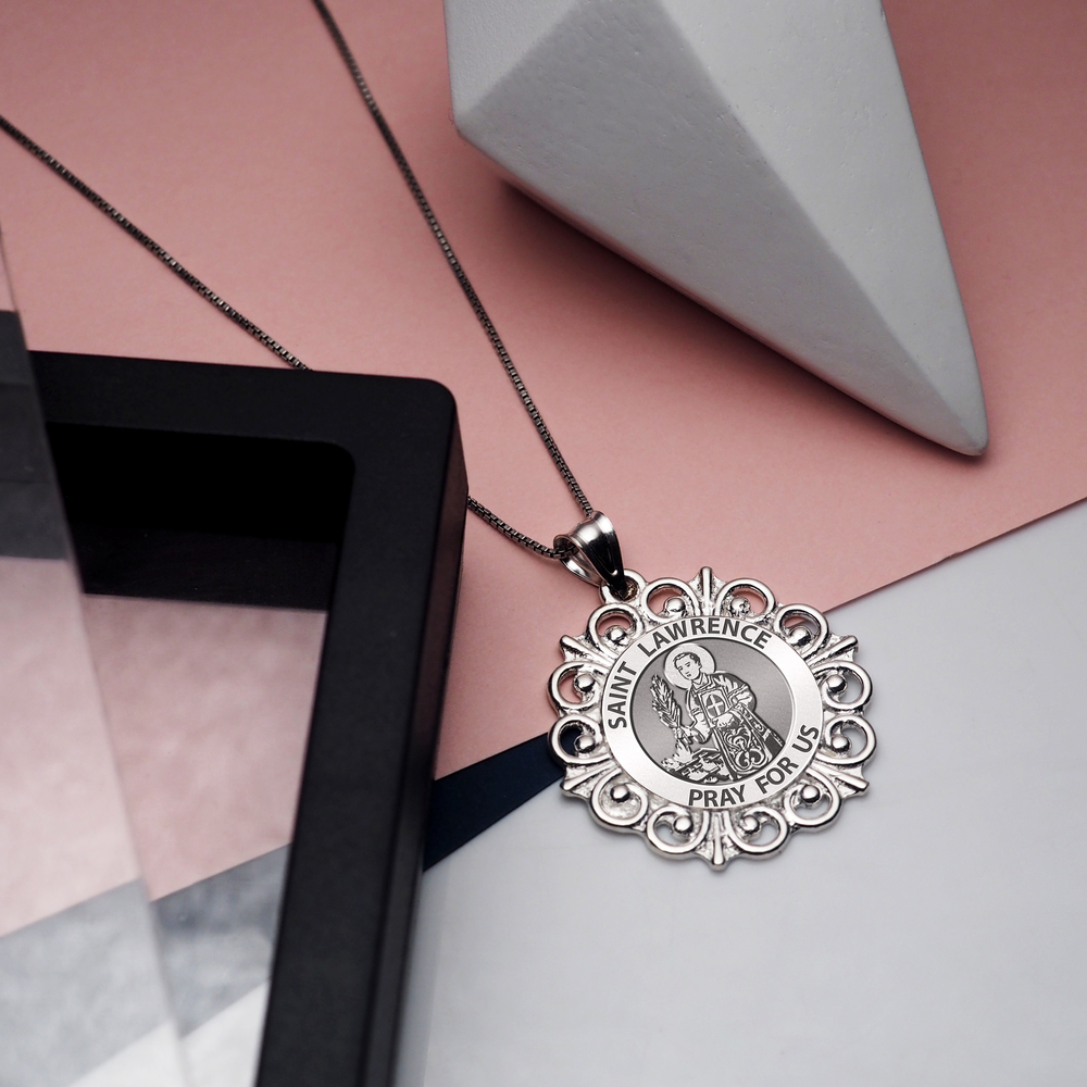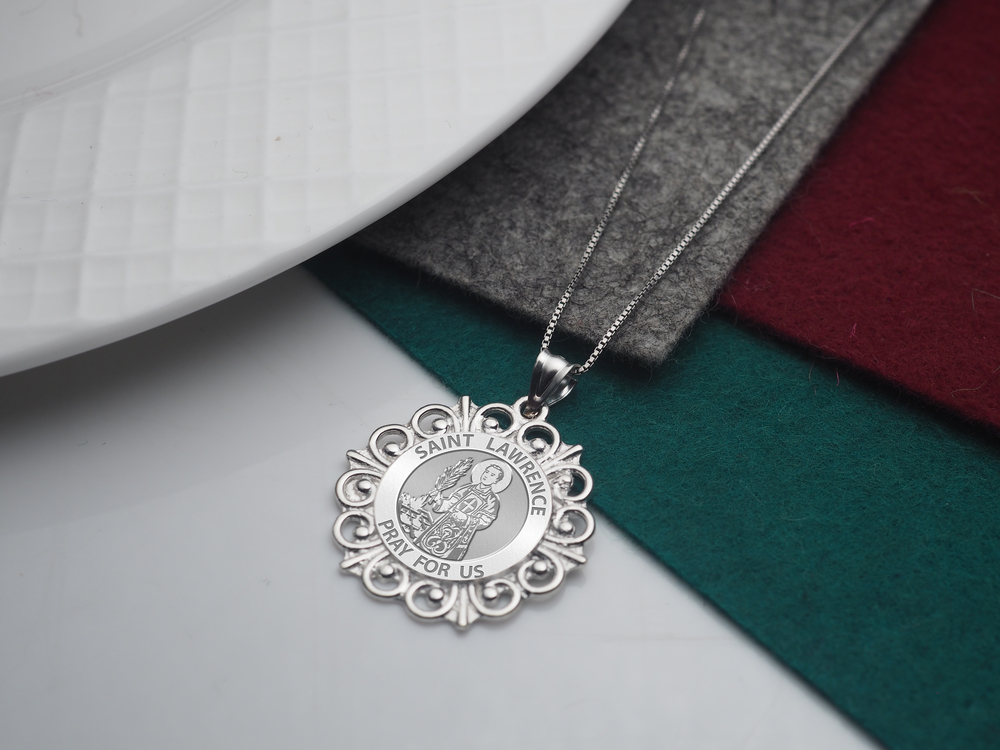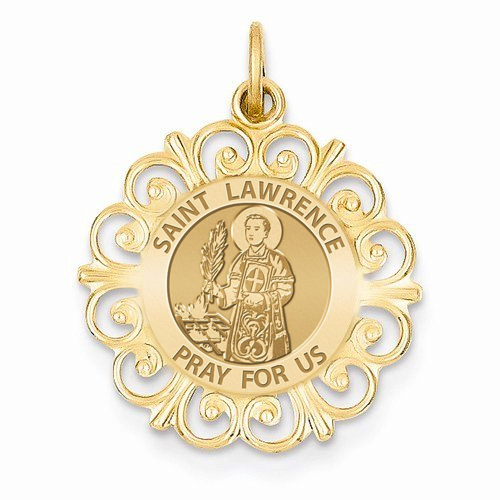 Saint Lawrence of Rome Round Filigree Religious Medal "EXCLUSIVE"