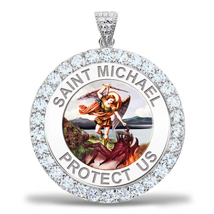 Saint Michael CZ Religious Round Medal Color - "EXCLUSIVE"