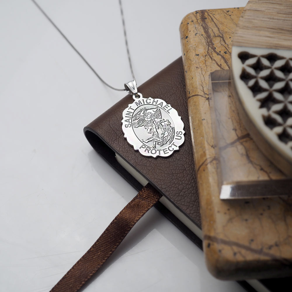 Saint Michael Scalloped OVAL Religious Medal "EXCLUSIVE"