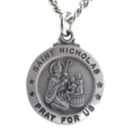 This Saint Nicholas medal measures at 3/4 inch x 3/4 inch, the height of a nickel.