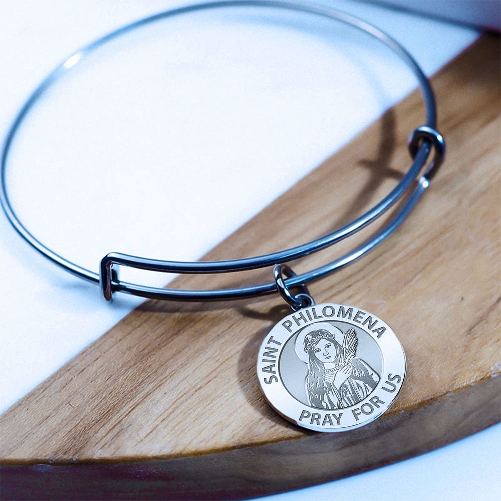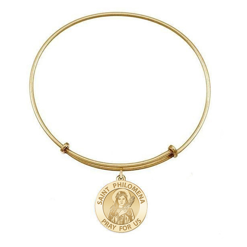 The Saint Philomena charm measures at 3/4 Inch (Size of a Nickel)