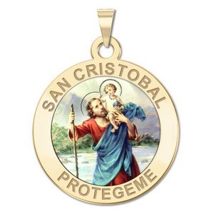 San Cristobal Round Religious Color Medal - "EXCLUSIVE"
