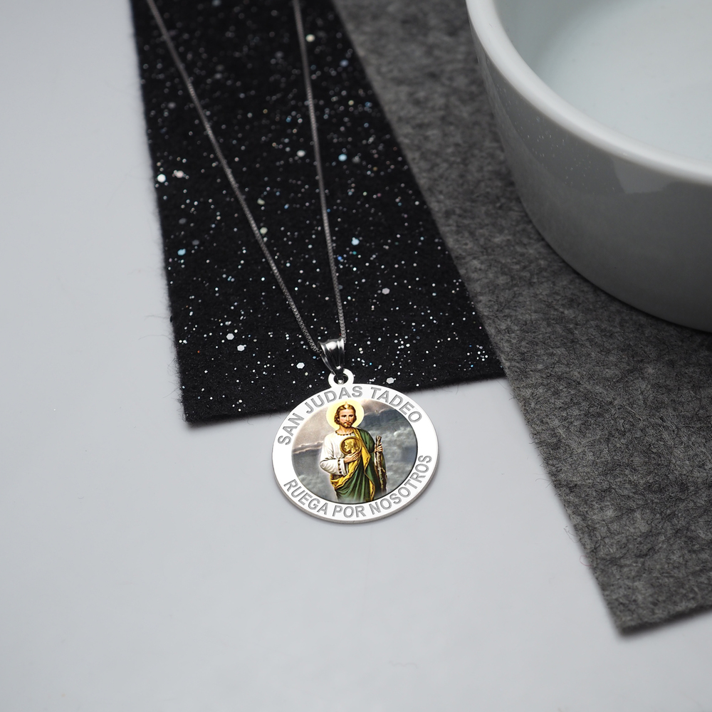 San Judas Tadeo Round Religious Color Medal "EXCLUSIVE"