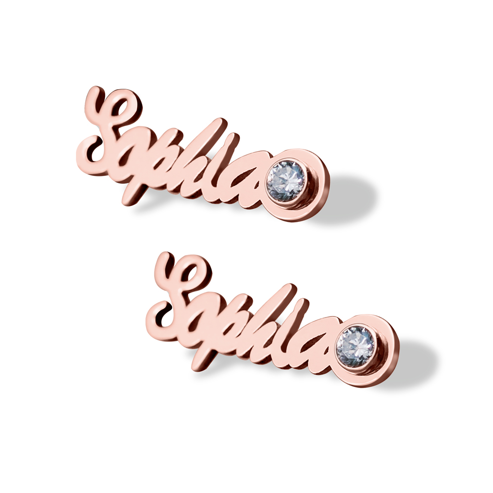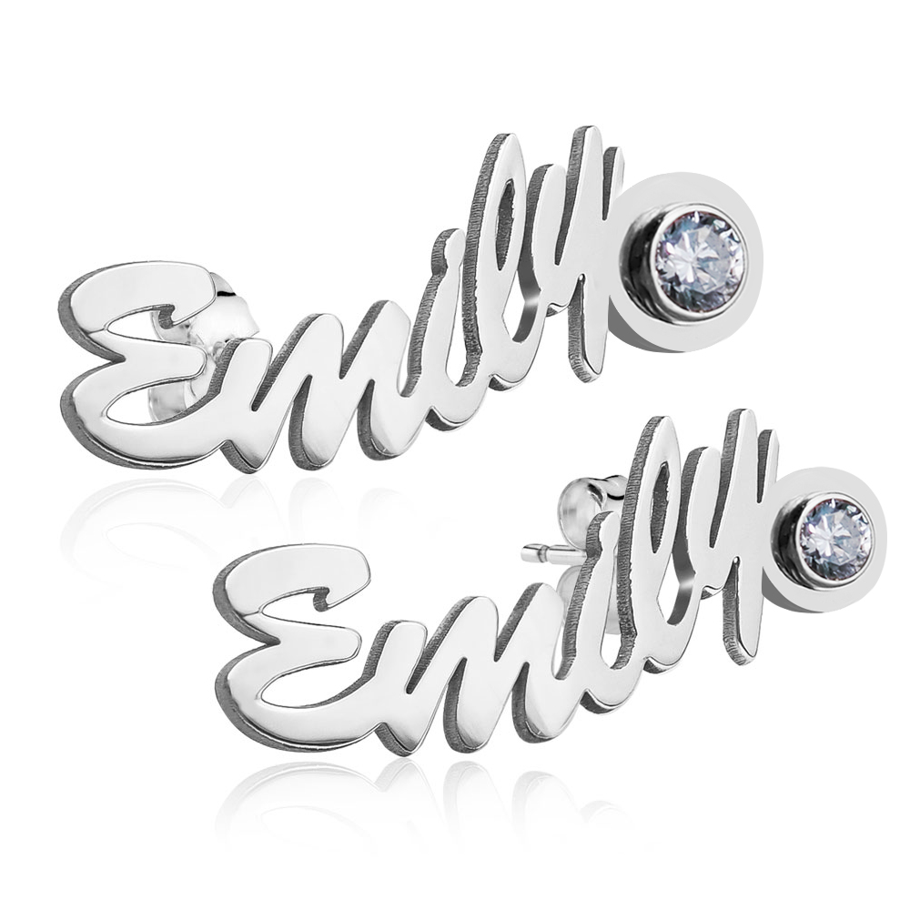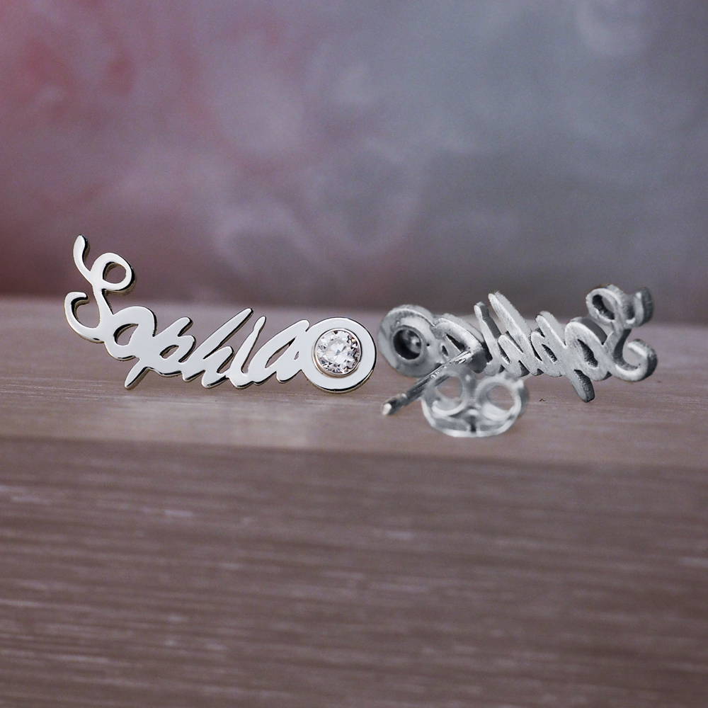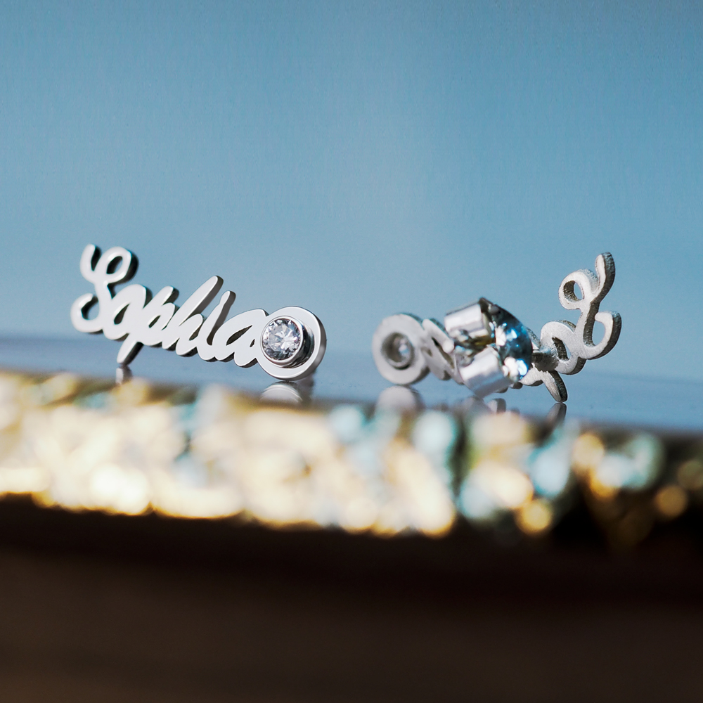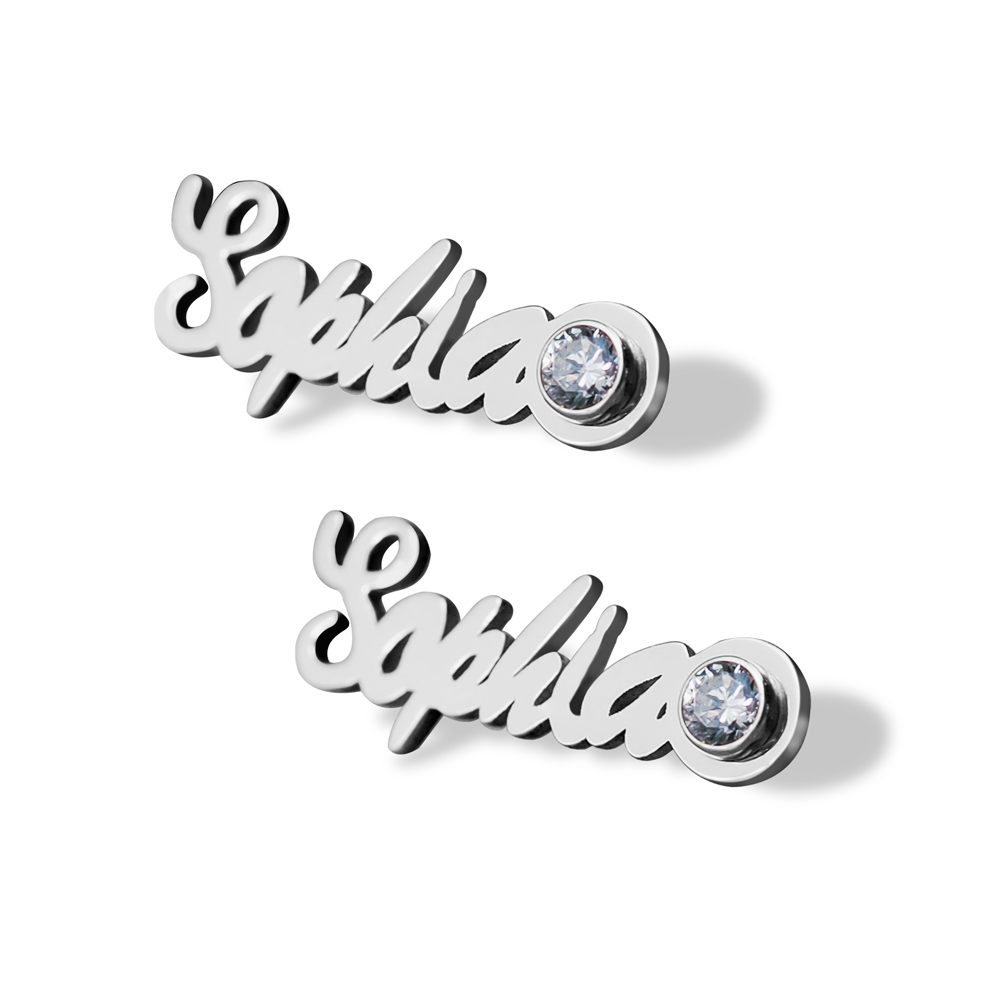 This pair of high polished script earrings is available in Solid .925 Sterling Silver, Black Sterling Silver, Gold
