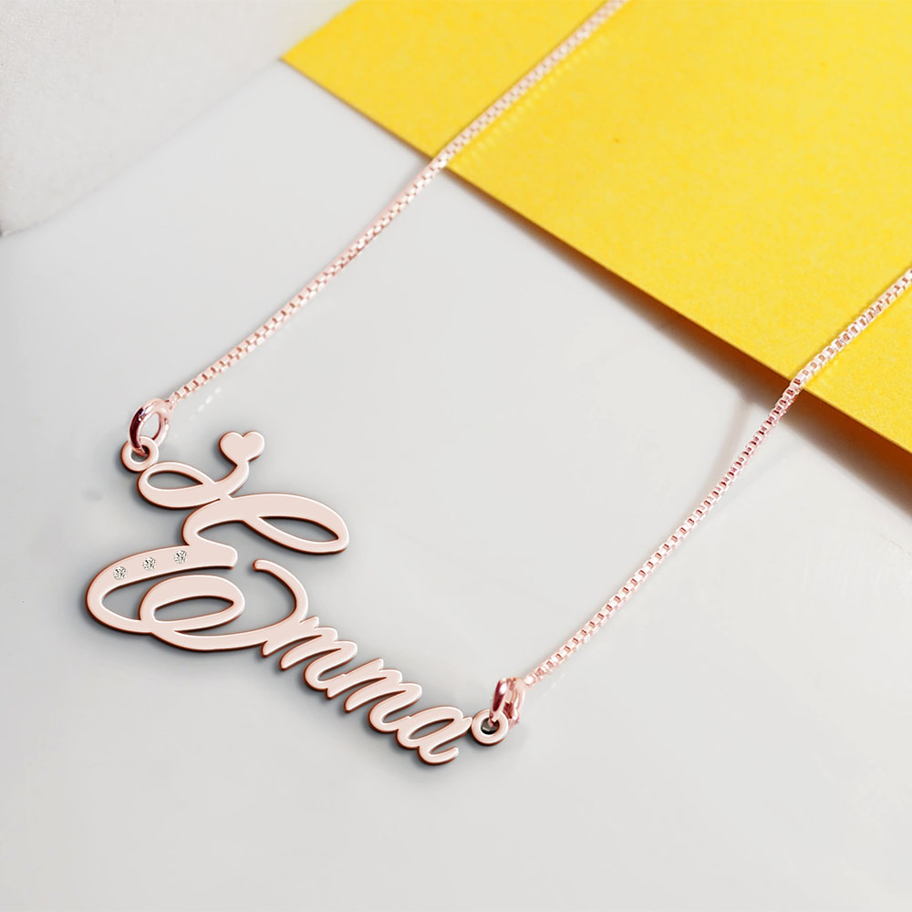 Celebrate your special someone with the stunning Script Name Necklace with 3 Diamonds!