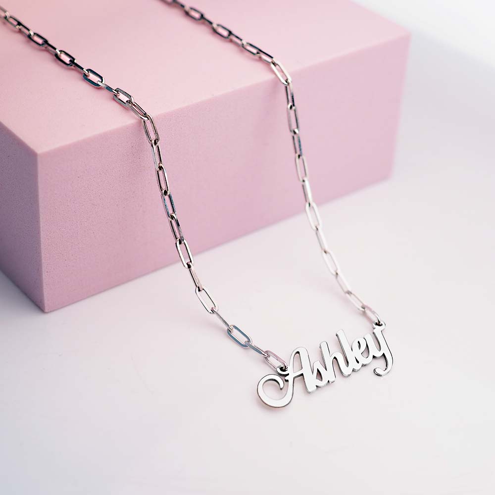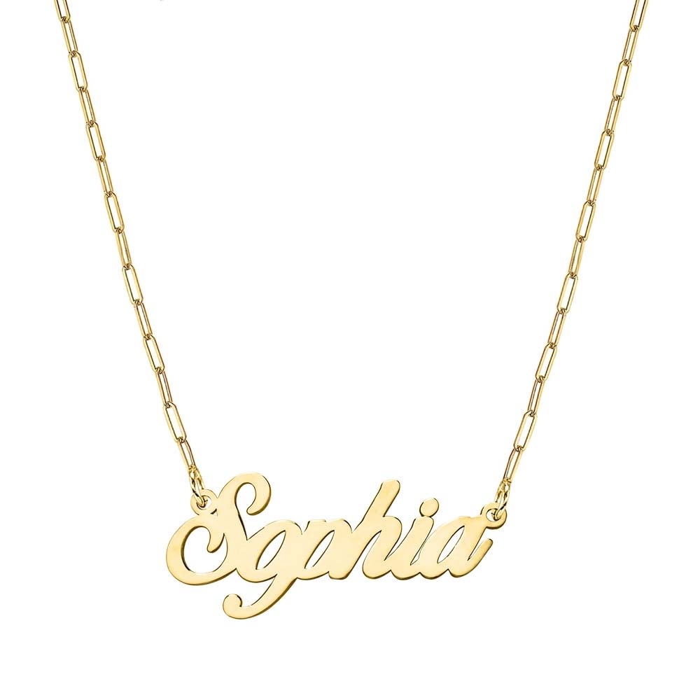 This nameplate is styled in a handwritten font & high polished to a reflective finish. Available