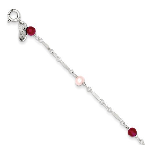 Sterling Silver Cultured Pearl & Strawberry Quartz Beaded Anklet