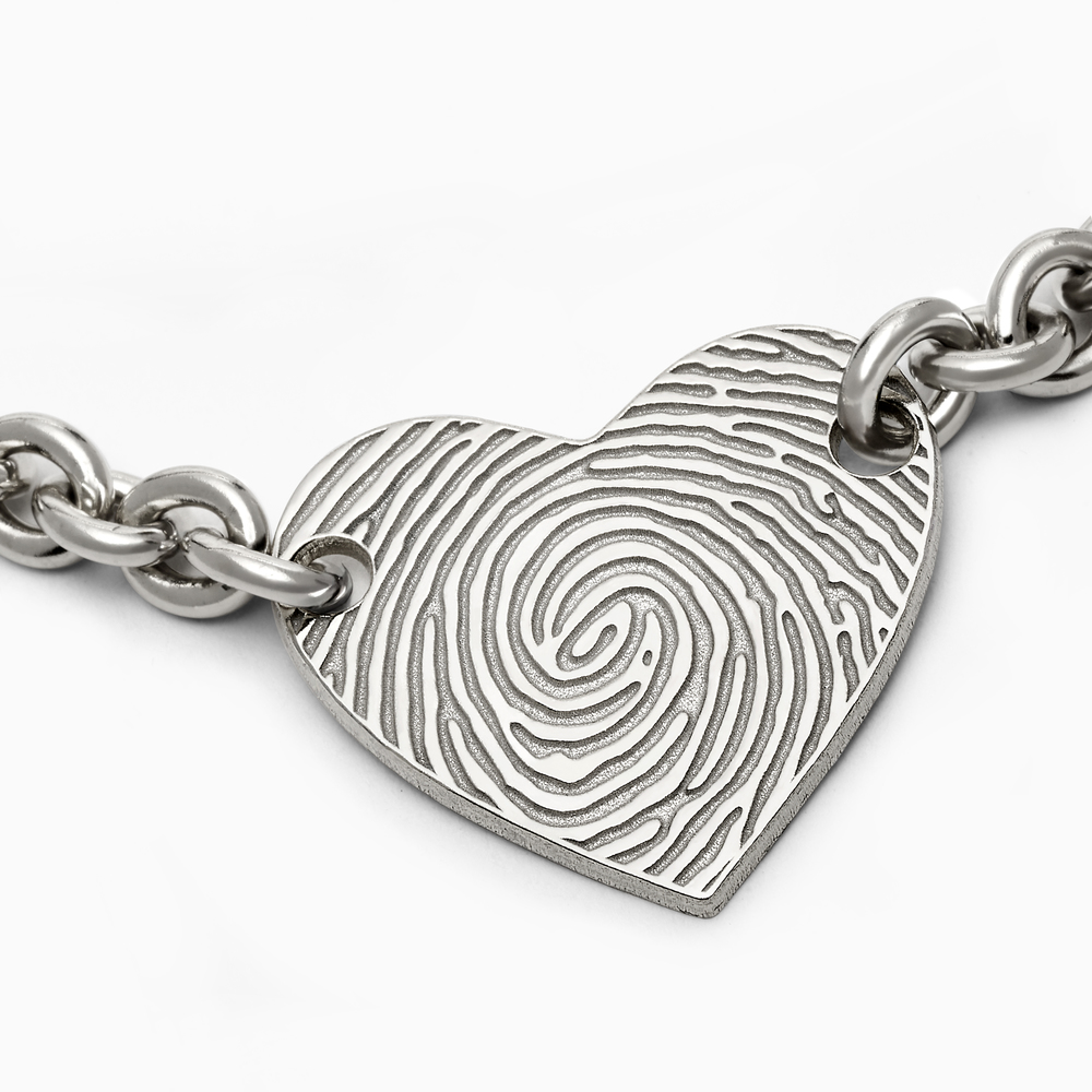 Sterling Silver Custom Fingerprint Heart Bracelet