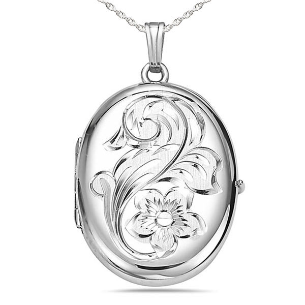 What is on the front of the locket? with Floral Design