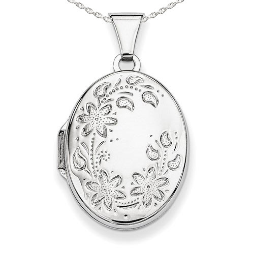 What is on the front of the locket? with Floral Design
