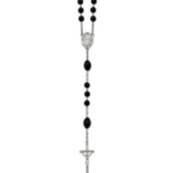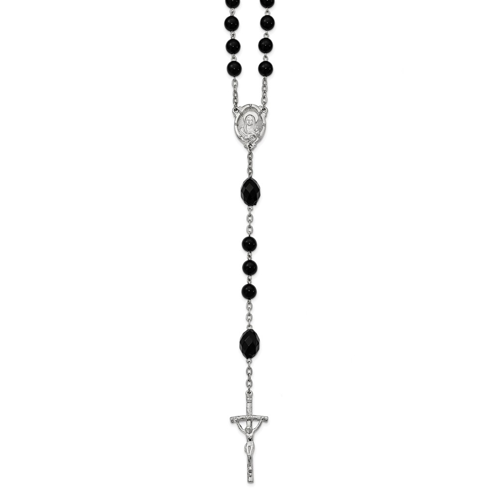 Silver-tone Black Acrylic & Glass Bead Rosary