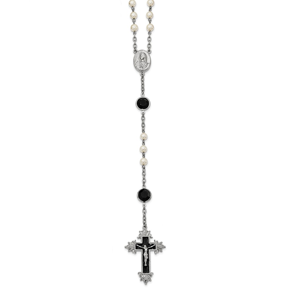 Silver-tone Black Enamel Black Swarovski Crystal & Glass Pearl Rosary
