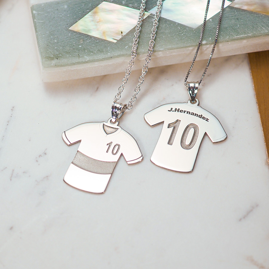 Exclusively at PicturesonGold.com... "Custom Sports Jerseys" Pendants. With your name, number, and team name or city initials/ school initials. ANY NAME OR NUMBER