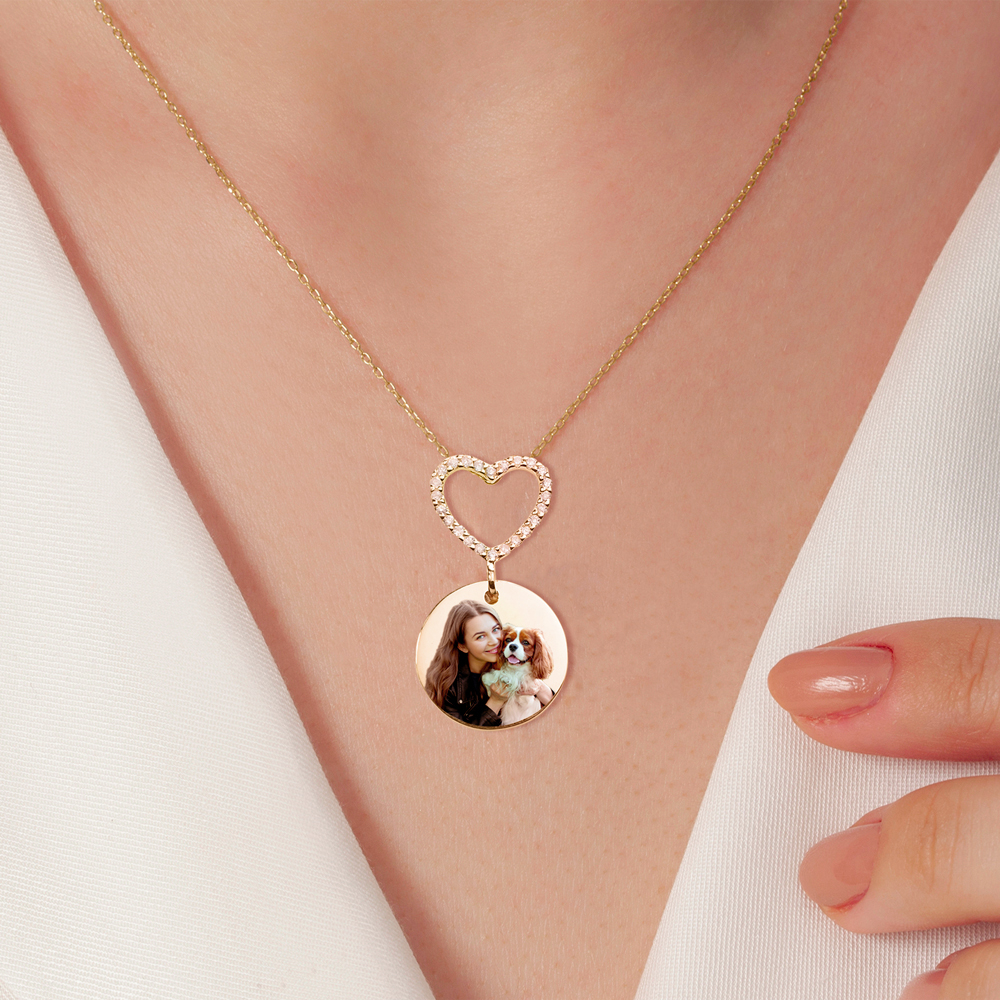 Solid 14k Gold Diamond Encrusted Photo Pendant