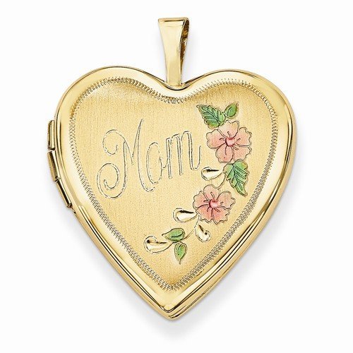 Solid 14k Heart Locket w/ Mom Enameled Heart Locket This locket be tastefully engraved with special messages for your loved one to make this locket an even more beautiful gift. Our Professionals will ensure proper size and placement of your message.