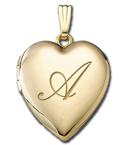 Solid 14K Yellow Gold Initial Heart Photo Locket