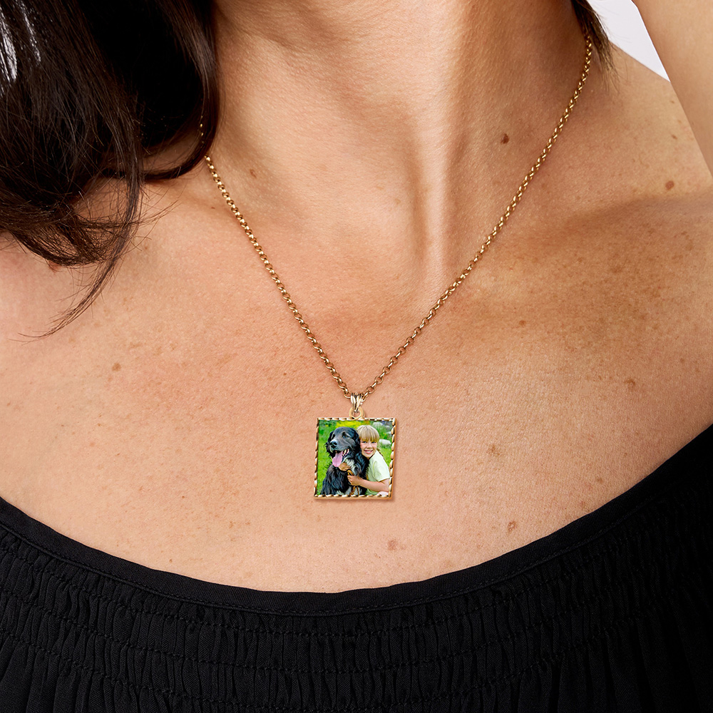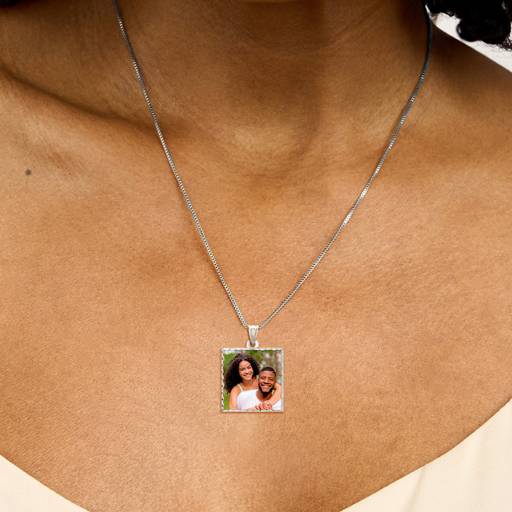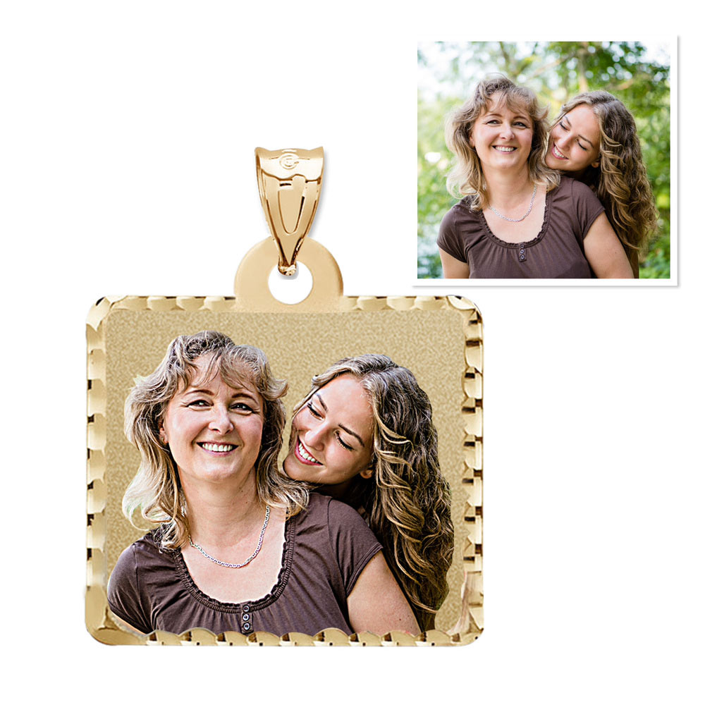 Square Pendant with Diamond Cut Edge Photo Pendant Charm