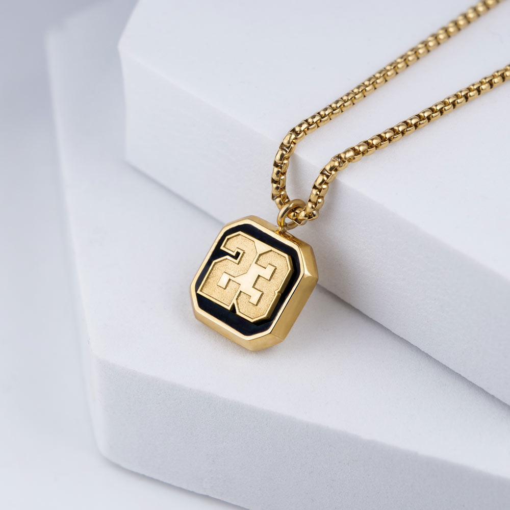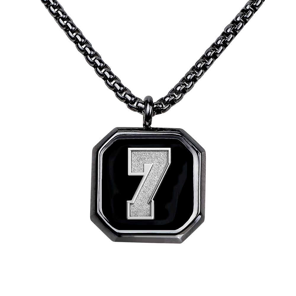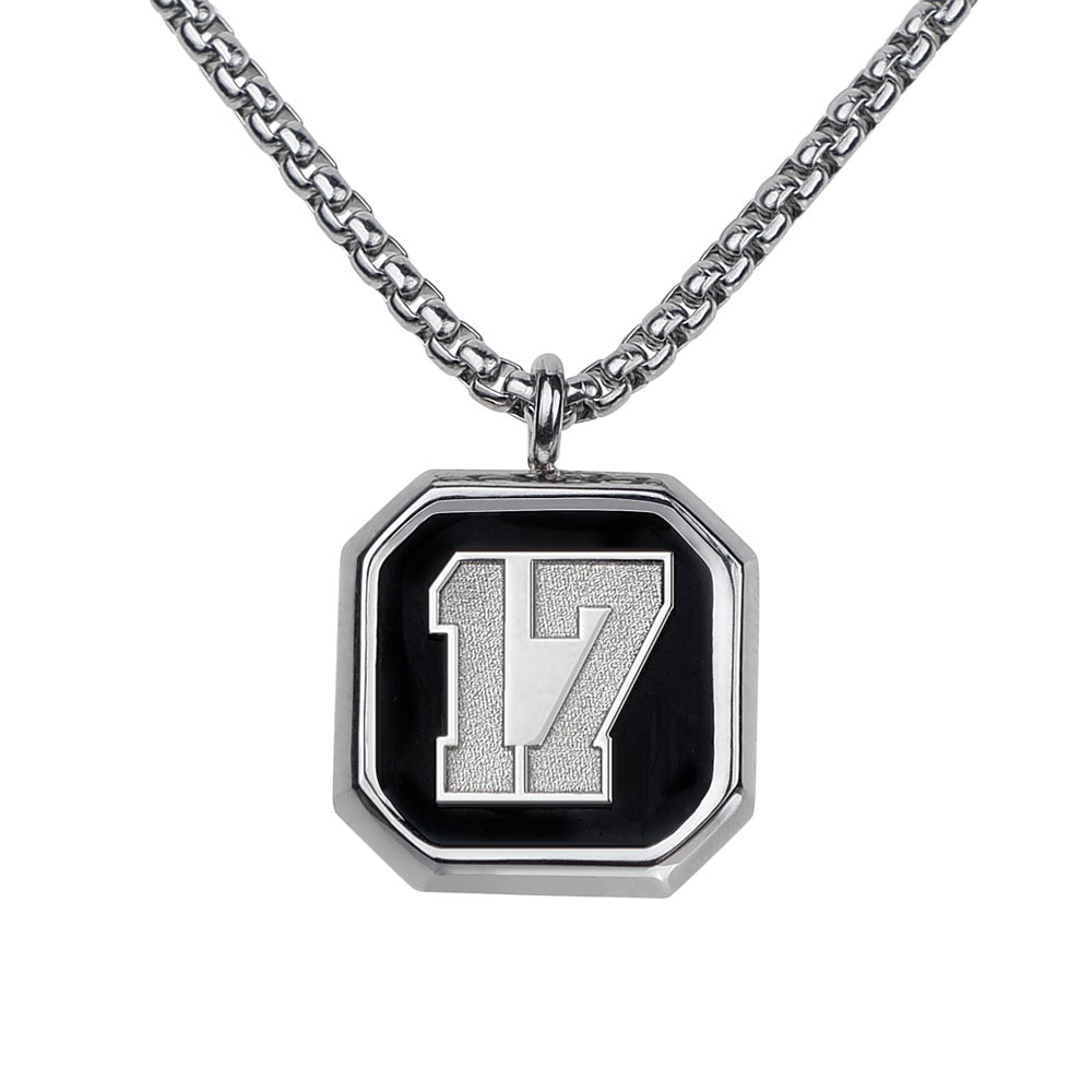 Introducing our Square Black Onyx Personalized Number Necklace, a sleek accessory for those who value style and personalization. Crafted with precision, the pendant features a black onyx-type background with your chosen number in sterling silver. Versatile for men, women, or children, wearers can display their own or a loved one's number, perfect for any sport or daily wear. Crafted from stainless steel, it's rust-resistant and won't tarnish, ensuring lasting shine. Complete with a 24-inch chain, this necklace ships in just one day, making it an ideal last-minute gift or personal indulgence. Elevate your style with our Square Black Onyx Personalized Number Necklace a statement piece for any occasion.