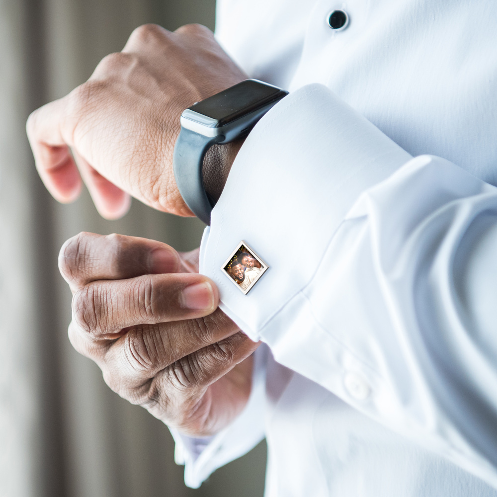 These elegant Square Stainless Steel Photo Cufflinks are Designed to showcase your favorite photos. They are durable and sleek, perfect for any occasion. Your photo is expertly laser engraved, ensuring it will last forever without fading or wear. The image is securely etched onto the cufflinks, creating a permanent, detailed design that is both sophisticated and personal. Whether for a special event, a memorable gift, or everyday wear, these custom cufflinks are a timeless accessory, ideal for weddings, anniversaries, or any occasion where you want to add a unique, personal touch.