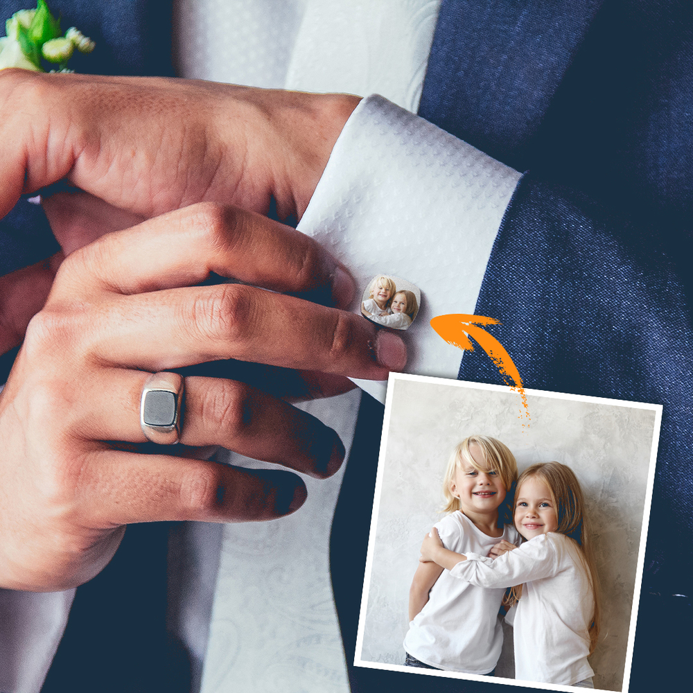 *These Cuff Links are the perfect Father's Day gift or a Bridal Party Gift *Cuff Link's are available in Stainless Steel * Each Cuff Link is approximately 3/4 Inch x 3/4 Inch * Price is Per Pair * Item is engravable with a message, monogram, And Photo * Ships in 1 Business Day