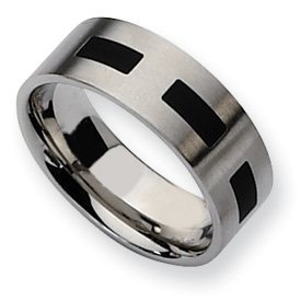 Stainless Steel Black Accent Flat 8mm Satin Wedding Band