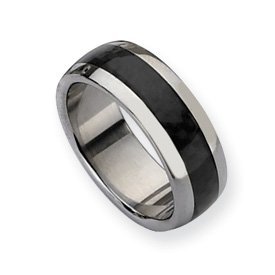 Stainless Steel and Carbon Fiber 8mm Polished Wedding Band