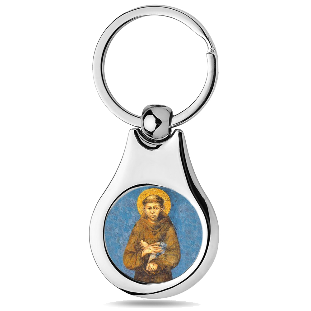 Stainless Steel Color Saint Francis of Assisi Keychain