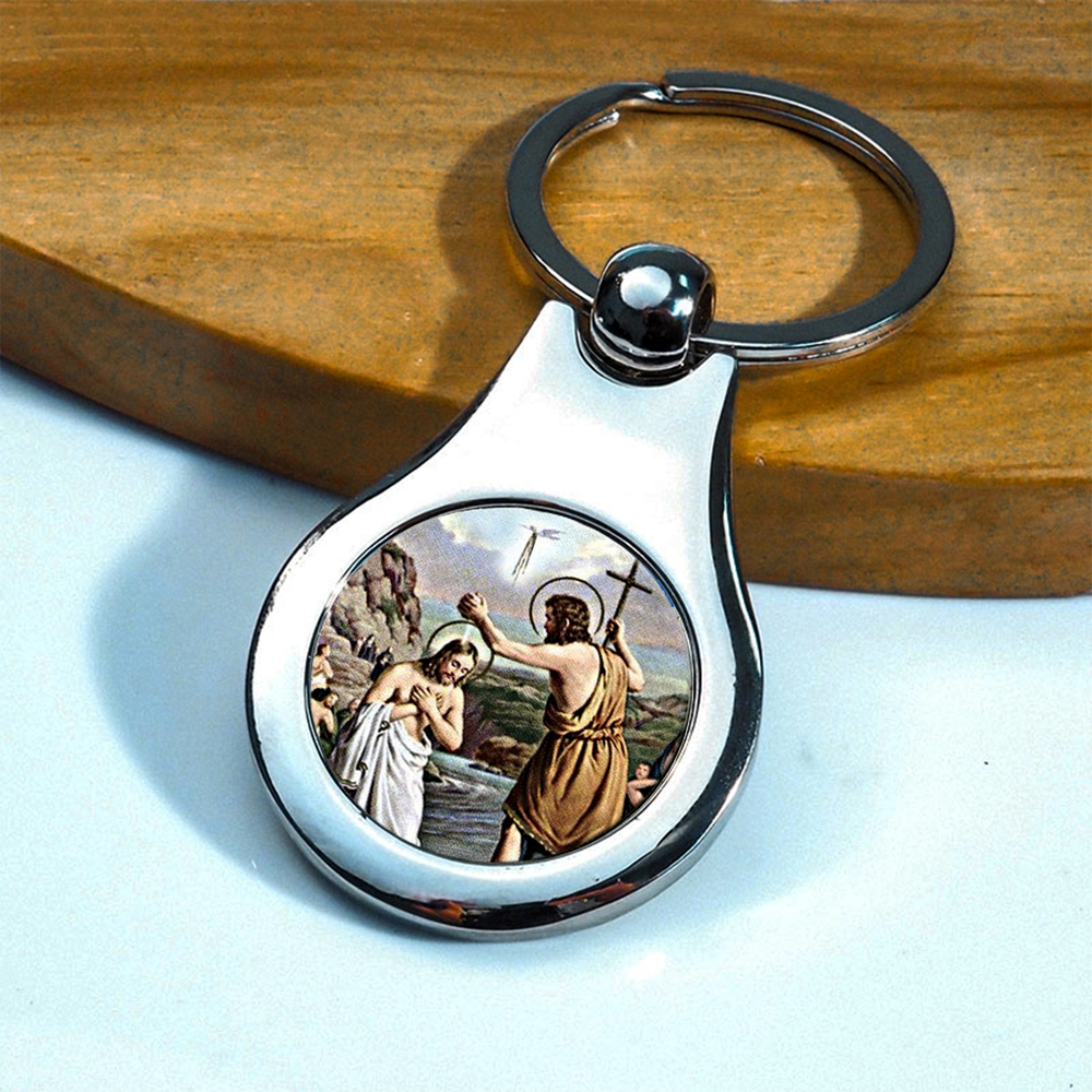 The Medal depicts St. John The Baptist baptizing Jesus, with the Holy Spirit approaching. Saint John the Baptist is the patron saint of Puerto Rico, and its capital city San Juan bears his name. In 1521, the island was given its formal name "San Juan Bautista de Puerto Rico", following the usual custom of christening the town with both its formal name and the name which Christopher Columbus had originally given the island, honoring John the Baptist. The indistinct use of "San Juan Bautista" and "Puerto Rico" for calling both the city and the island led to a reversal in practical use by most inhabitants due largely to a map-making error. Therefore by 1746 the name for the city (Puerto Rico) had become that of the entire island, while the name for the island (San Juan Bautista) had become the name for the city. The official motto for the island of Puerto Rico also references the saint, Joannes Est Nomen Eius (translated, "John is his name"). He is also a patron saint of French Canada, and Newfoundland. The Canadian cities of St. John's, Newfoundland (1497) and Saint John, New Brunswick (1604) were both named in his honor. In the UK Saint John the Baptist is the patron saint of Penzance, Cornwall. His feast day is June 24, celebrated in Quebec as the Fte nationale du Qubec (la Fte St-Jean-Baptiste).