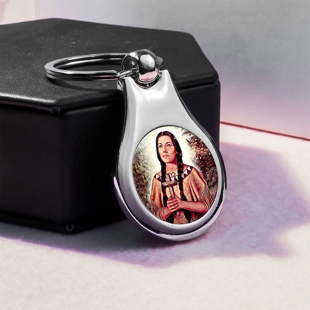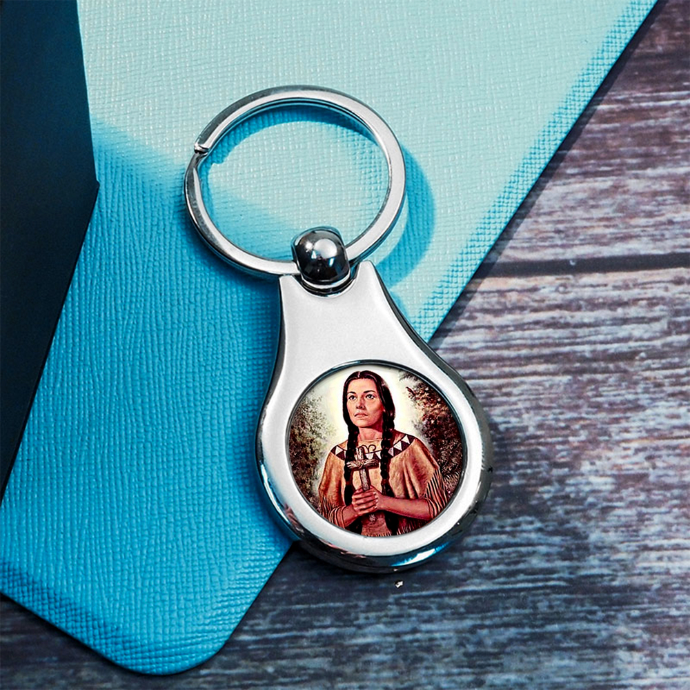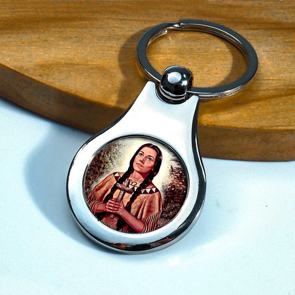 Stainless Steel Color Saint Kateri Tekakwitha Keychain